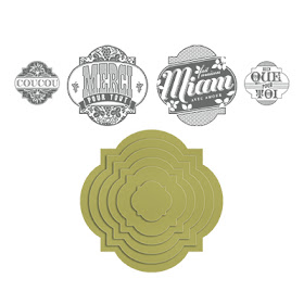 Ce set s'utilise avec les matrices de Big shot ci-dessus qui s'adaptent parfaitement à la forme et la taille des tampons.